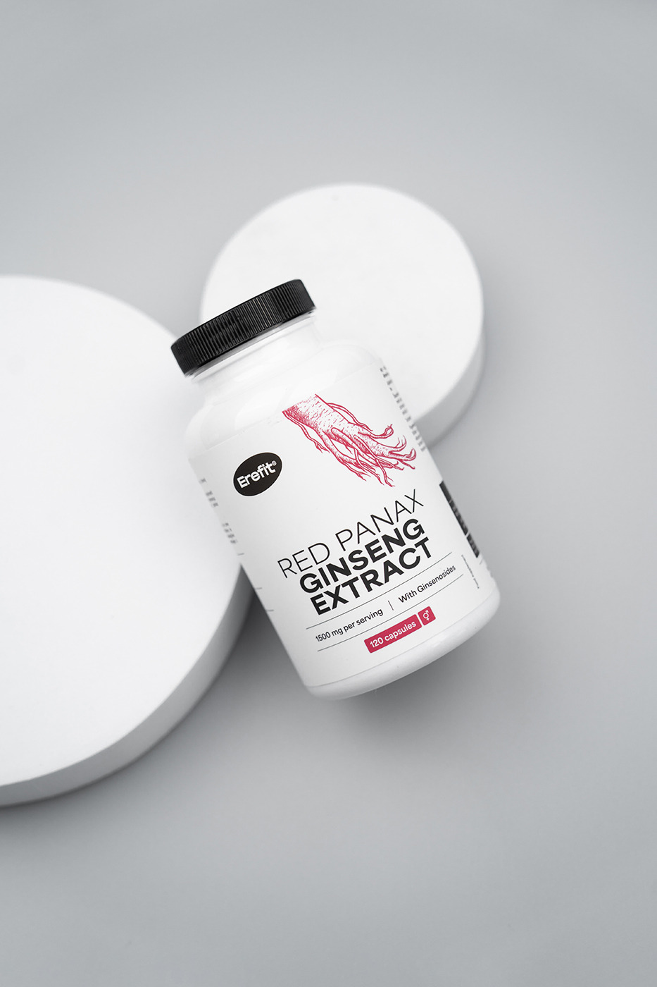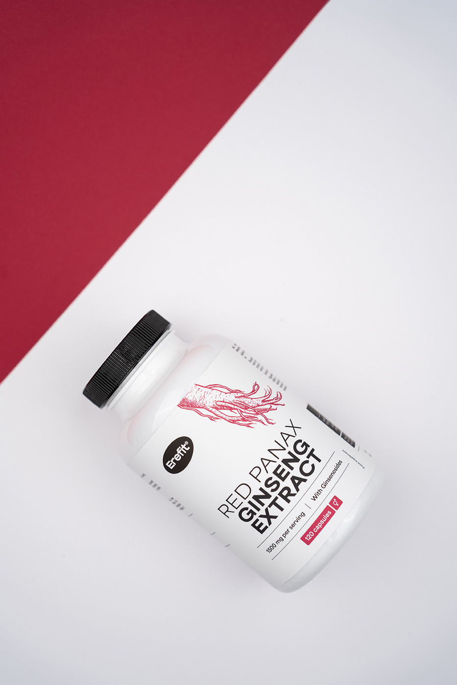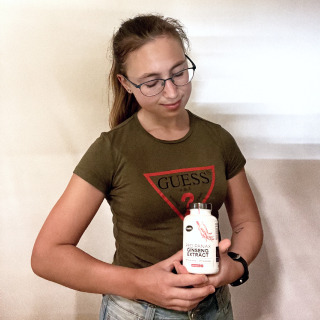 Ingrédients: extrait de racine de ginseng (Panax ginseng), hydroxypropylméthylcellulose (HPMC; gélule végétale), agents anti-agglomérants: sels de magnésium d'acides gras et dioxyde de silicium, charge: cellulose microcristalline, colorant: carbonate de calcium.